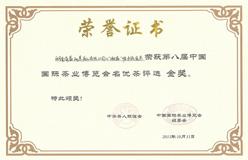 第八屆國際茶博會(huì )金獎(手筑官茶)