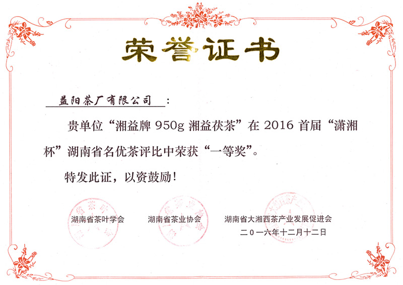 “瀟湘杯”名優(yōu)茶一等獎