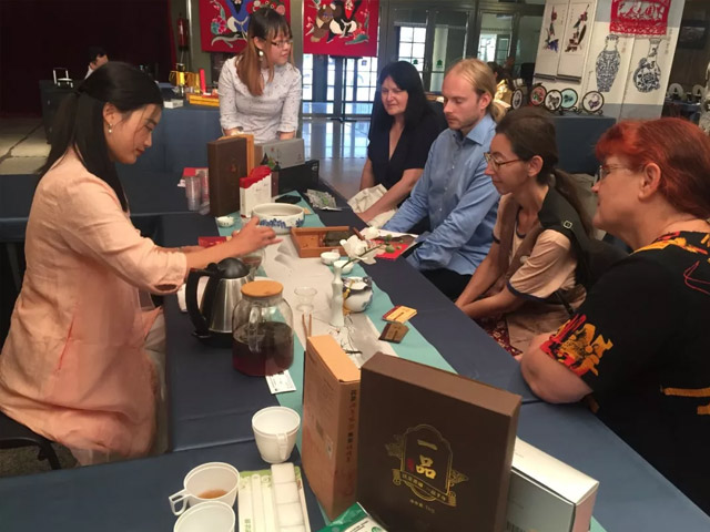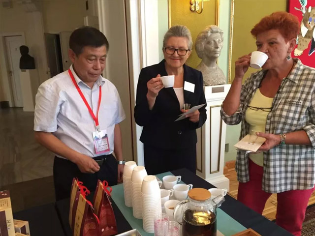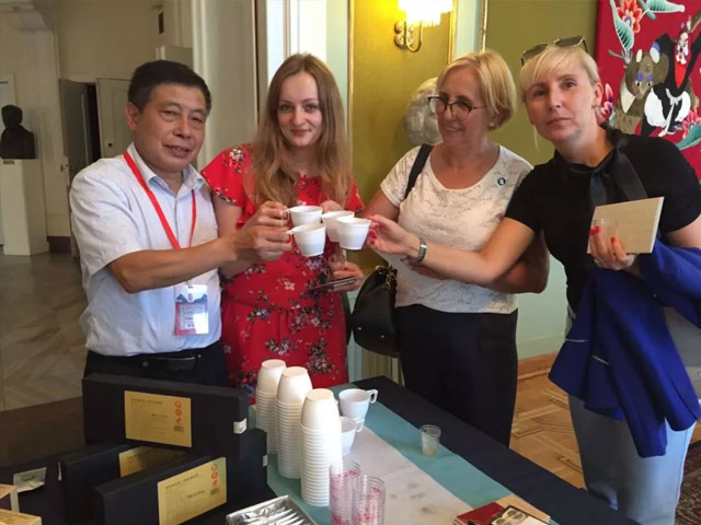 湘益茯茶作為湖南黑茶的代表以及茯磚茶國家非遺制作技藝唯一傳保護主體亮相波蘭、捷克非遺交流周,向國外友人展示“古絲綢之路上神秘之茶”的魅力以及茯茶獨有的“金花”。