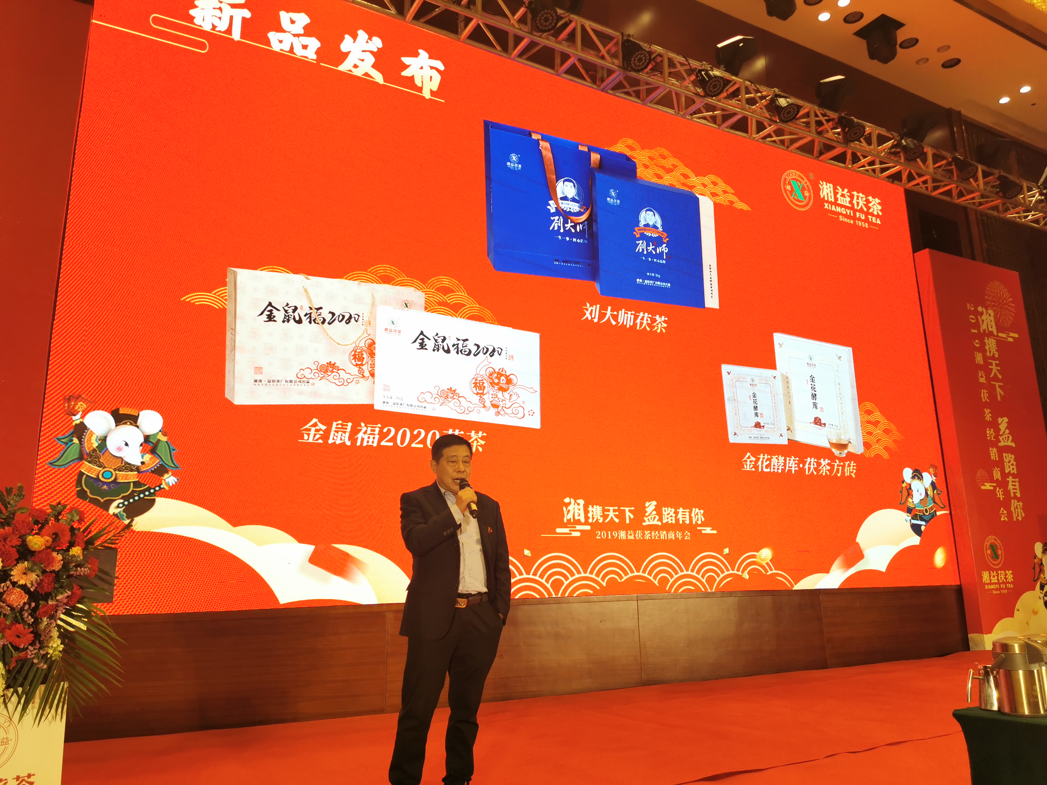 在下午的年會(huì )中,先是年度新品發(fā)布,由茯茶國家非遺制作技藝國家級傳承人、中國第一批制茶大師,公司副總經(jīng)理劉杏益大師做新品推介,有劉大師茯茶、金花酵庫方磚、金鼠福生肖茶、7319茯茶,這四款新品都傾注了湘益茶人的心血,得到了到場(chǎng)來(lái)賓的高度贊賞。