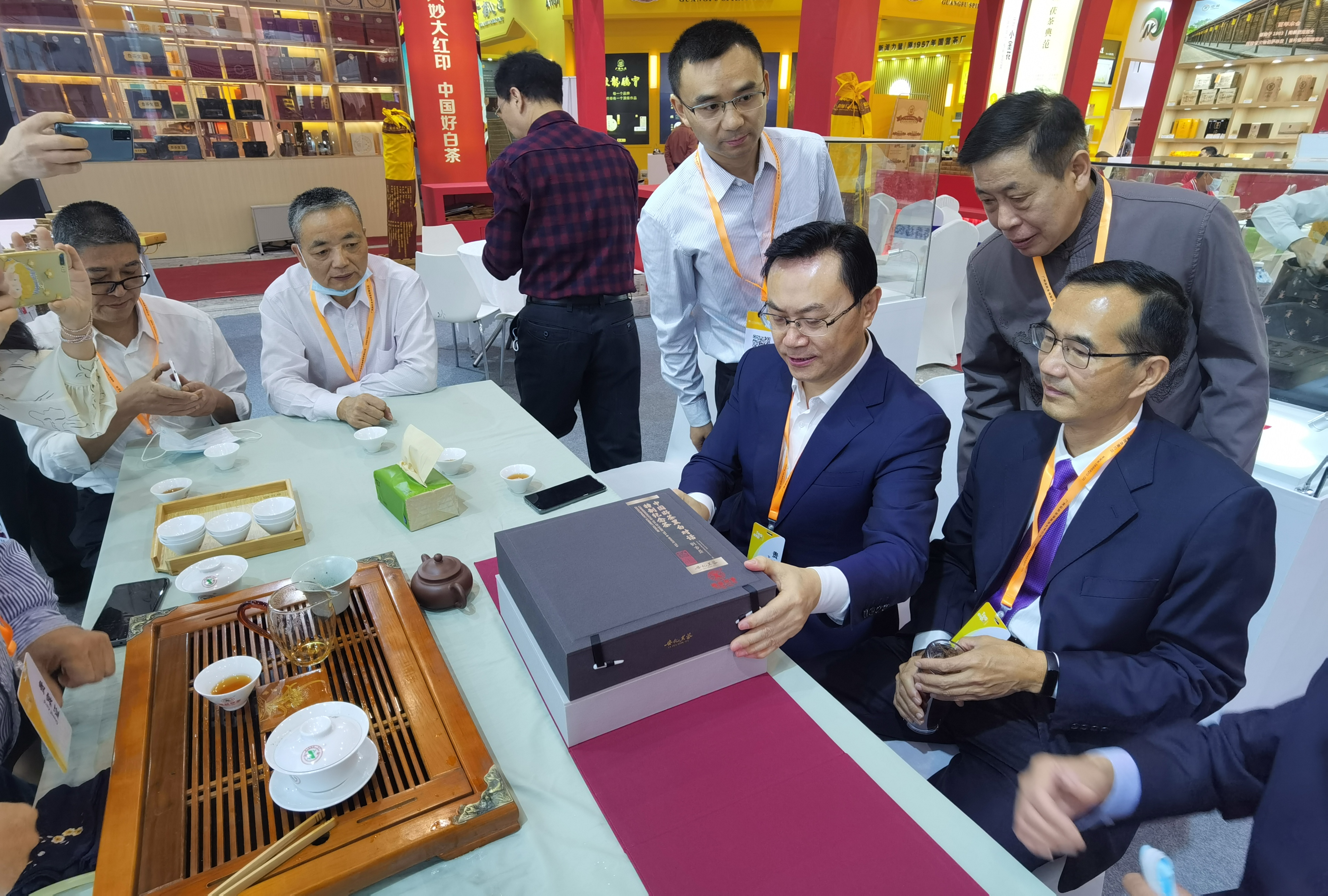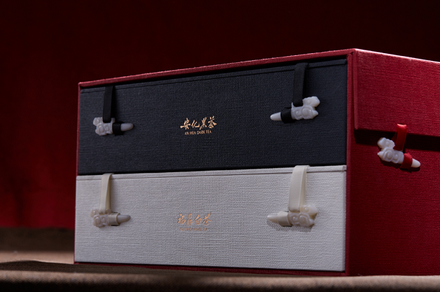 茶禮中一方磚(黑茶)、一圓餅(白茶),均為國家級非遺技藝代表性傳承人劉杏益(黑茶)、梅相靖(白茶)匠心之作,亦堪稱(chēng)安化黑茶、福鼎白茶兩大地理品牌的佳作!