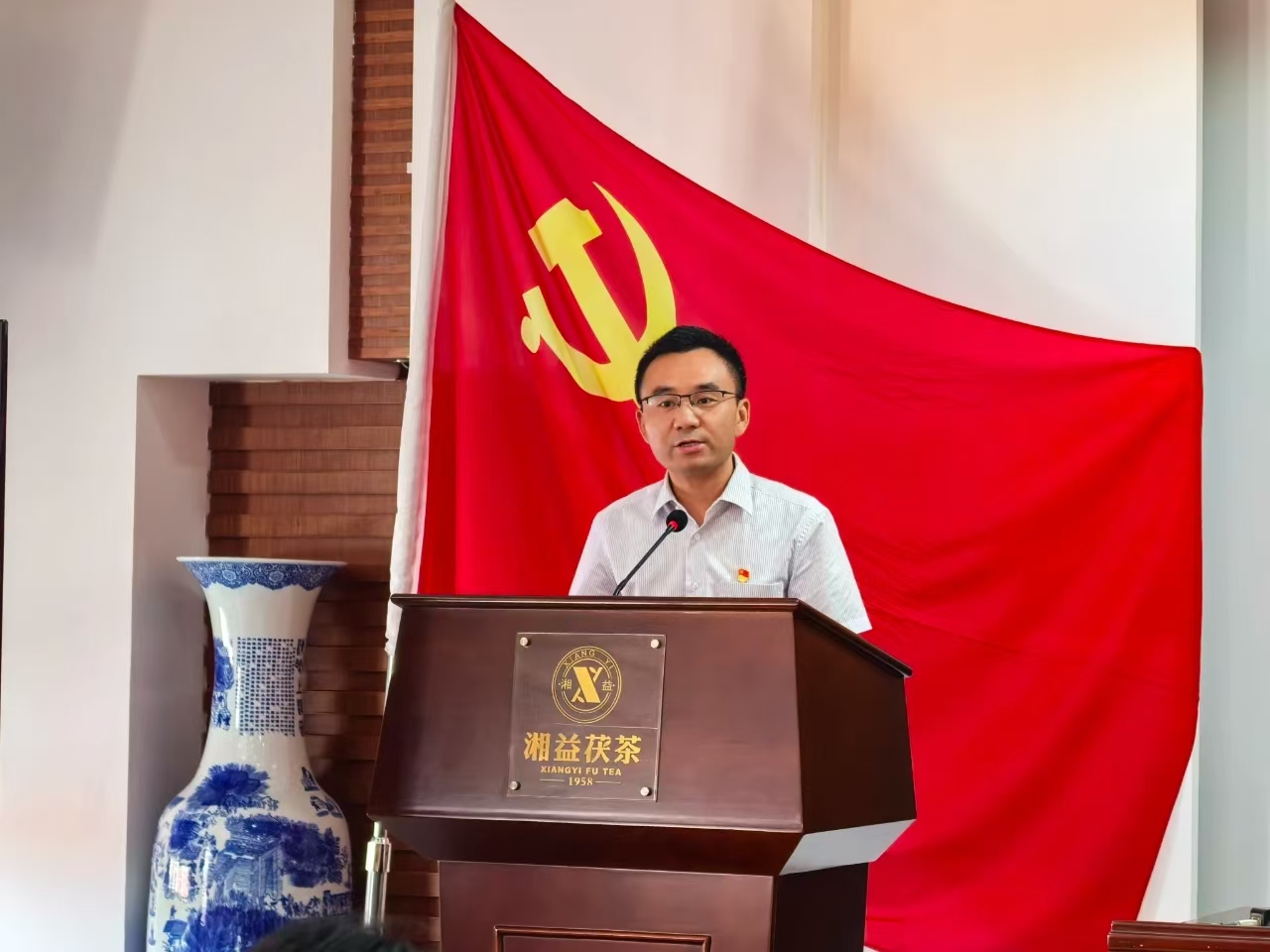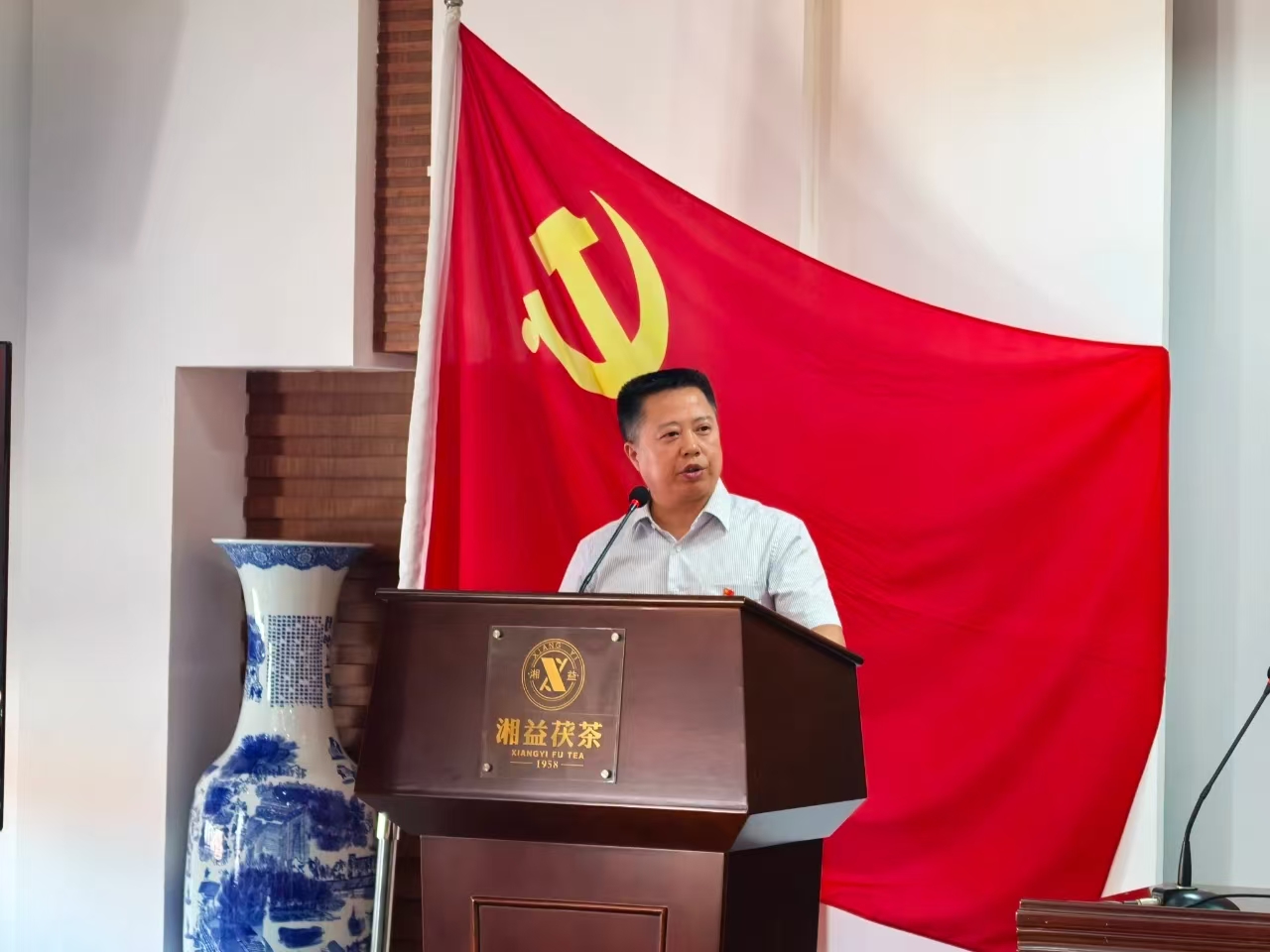 7月1日,在黨的104周年華誕這個(gè)特殊的日子里,湘益茯茶全體黨員精神抖擻地齊聚公司6樓會(huì )議室。在生產(chǎn)支部書(shū)記安茂強的帶領(lǐng)下,全體黨員高舉右拳,面向鮮紅的黨旗莊嚴宣誓。鏗鏘有力的誓言在會(huì )場(chǎng)回蕩,仿佛穿越時(shí)空,喚醒了每位黨員入黨時(shí)的赤誠初心。這一刻,信仰的力量在胸中激蕩,奮斗的熱情在心中燃燒。