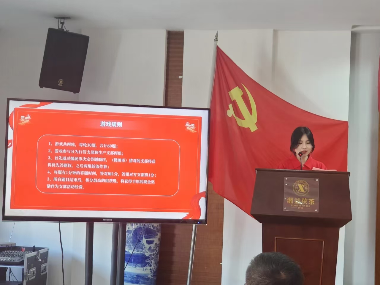紅色知識與廠(chǎng)史知識問(wèn)答環(huán)節開(kāi)始,大屏幕上題目涵蓋黨的歷史、重要會(huì )議、革命英雄事跡及廠(chǎng)史知識。行政支部與生產(chǎn)支部黨員全神貫注答題,答對題目現場(chǎng)掌聲熱烈。黨員們鞏固黨性知識,加深對黨史廠(chǎng)史理解,認識到紅色政權、新中國、中國特色社會(huì )主義及單位發(fā)展成果來(lái)之不易。