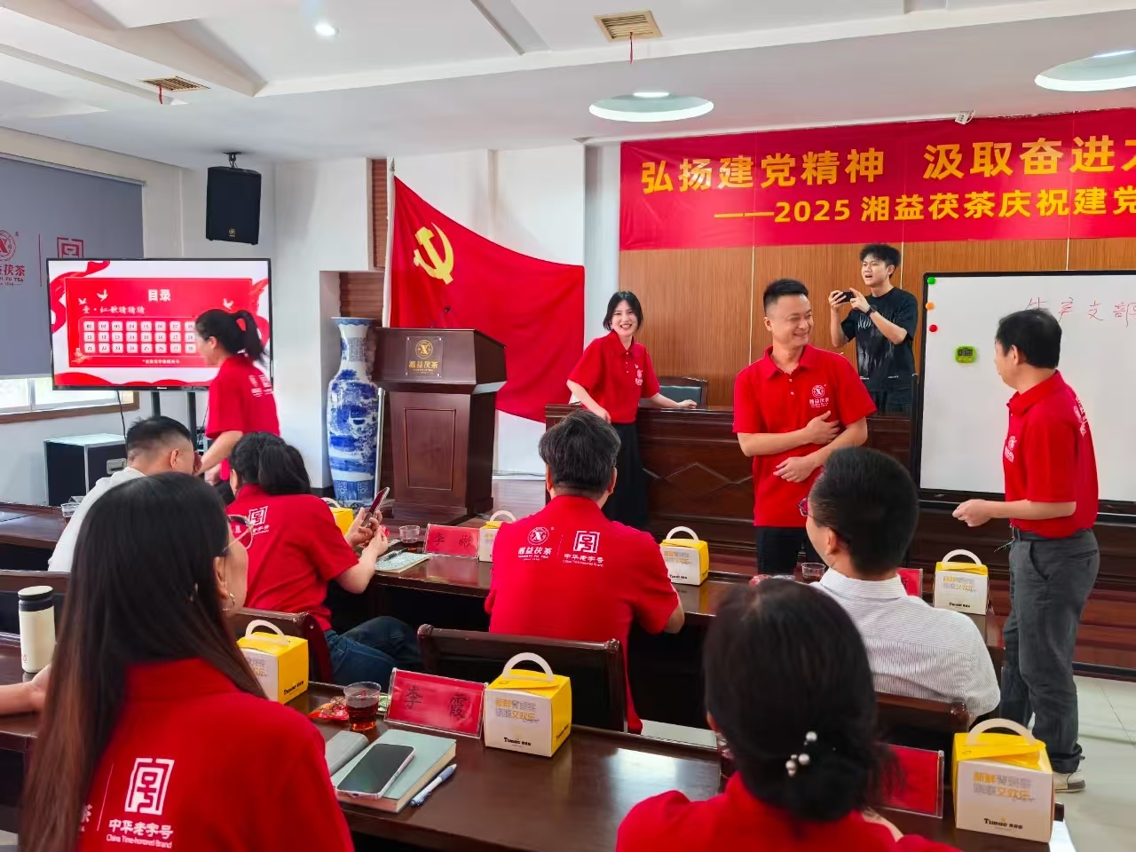 活動(dòng)尾聲,公司總經(jīng)理余智勇的講話(huà)擲地有聲:"同志們,新時(shí)代的號角已經(jīng)吹響。讓我們以逢山開(kāi)路、遇水搭橋的闖勁,以越是艱險越向前的拼勁,共同書(shū)寫(xiě)湘益茯茶新的輝煌篇章!"這番話(huà)語(yǔ)猶如戰鼓催征,激勵著(zhù)每一位黨員以更加昂揚的姿態(tài)投身企業(yè)發(fā)展。